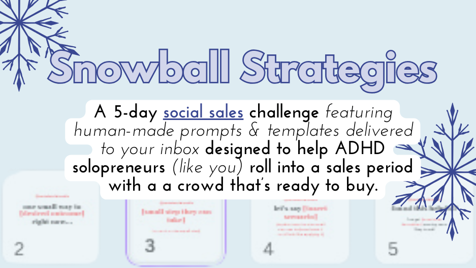 👉 feel like biz advice they've gotten has bypassed their values, ADHD needs, comfort level, and limited spoons, and want someone who will take a more nuanced approach rather than a rigid one-size-fits-all approach.